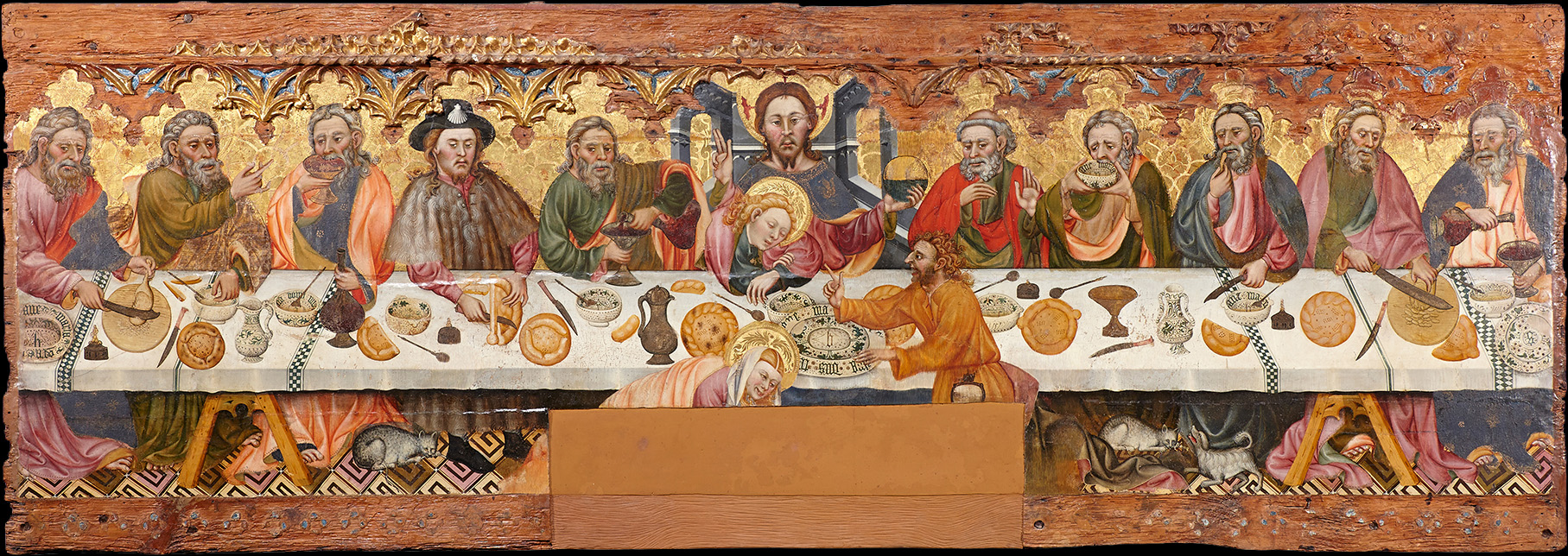 Atribuït a Pere Teixidor. Retaule del sant Sopar, 1435-1445. Pintura al tremp sobre fusta. Procedent de l’església de Santa Constança de Linya, Navès (el Solsonès). Museu Diocesà de Solsona