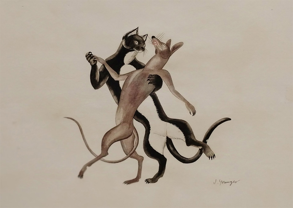 Josep Granyer Giralt. La dansa del gat i la rata, 1962. Aquarel·la i tinta xinesa. Museu d’Art de Sabadell