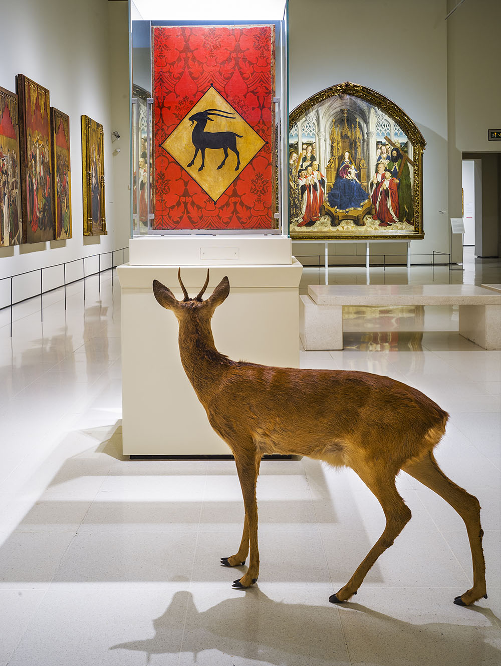 Setxu Xirau. L’ull del cabirol, 2022-23. Cabirol naturalitzat. Intervenció al Museu Nacional d’Art de Catalunya ©