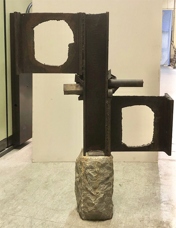 Àngels Freixanet i Picanyol (1940), Composició abstracta, 1991. Ferro i pedra, 109 x 76 x 15 cm. Biblioteca Museu Víctor Balaguer.