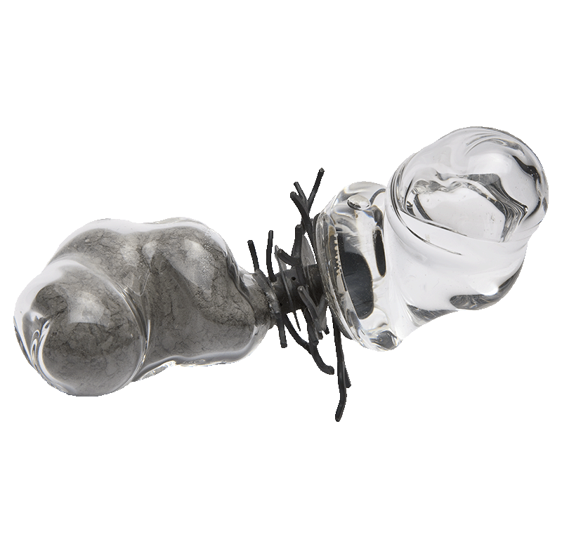 Estela Saez Vilanova (1977), Del gènesi a l’apocalipsi (sèrie “Casiopea’s World”), 2007. Cendra, argent i vidre, 9 x 5 x 6 cm. Museu de l’Empordà.