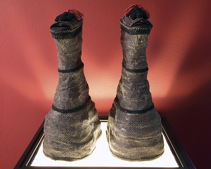 Maïs treballa aquí una de les seves temàtiques per excel·lència, els sentiments i les emocions humanes, en aquest cas portades al límit. La seva és una pràctica artística compromesa, feminista, contundent. Des dels seus inicis amb l’esmalt, ha transitat cap a altres materials, entre els quals trobem els metalls i altres elements no convencionals, que li permeten explorar simbologies que fan referència al seu univers personal i a la seva visió del món en què vivim.