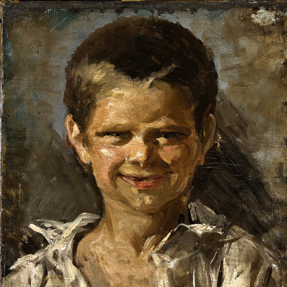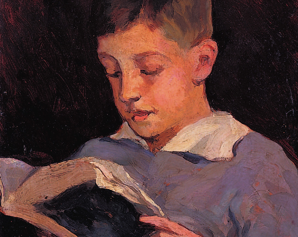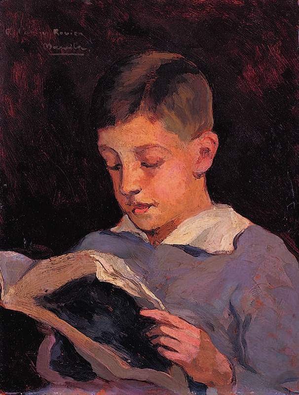 Frederic Masriera Vila (Masvila), fill de Frederic Masriera Manovens i Antonia Vila, i, per tant, cosí del joier Lluís Masriera Roses, va formar part de la saga d’artistes Masriera formant-se a l’Escola de Llotja, treballant a la joieria familiar i dedicant-se, també, a la pintura. El seu interès pel gènere del retrat i per la infància i la joventut, palès entre d’altres en les il·lustracions per a revistes com En Patufet, el va dur a fer diverses maternitats i retrats com aquest. En aquest cas, Masriera va optar per una imatge canònica del nen de classe mitjana i de la burgesia que, essent escolaritzat i alfabetitzat, llegeix tranquil·lament un llibre en actitud curiosa, amb ganes d’aprendre, créixer i madurar.