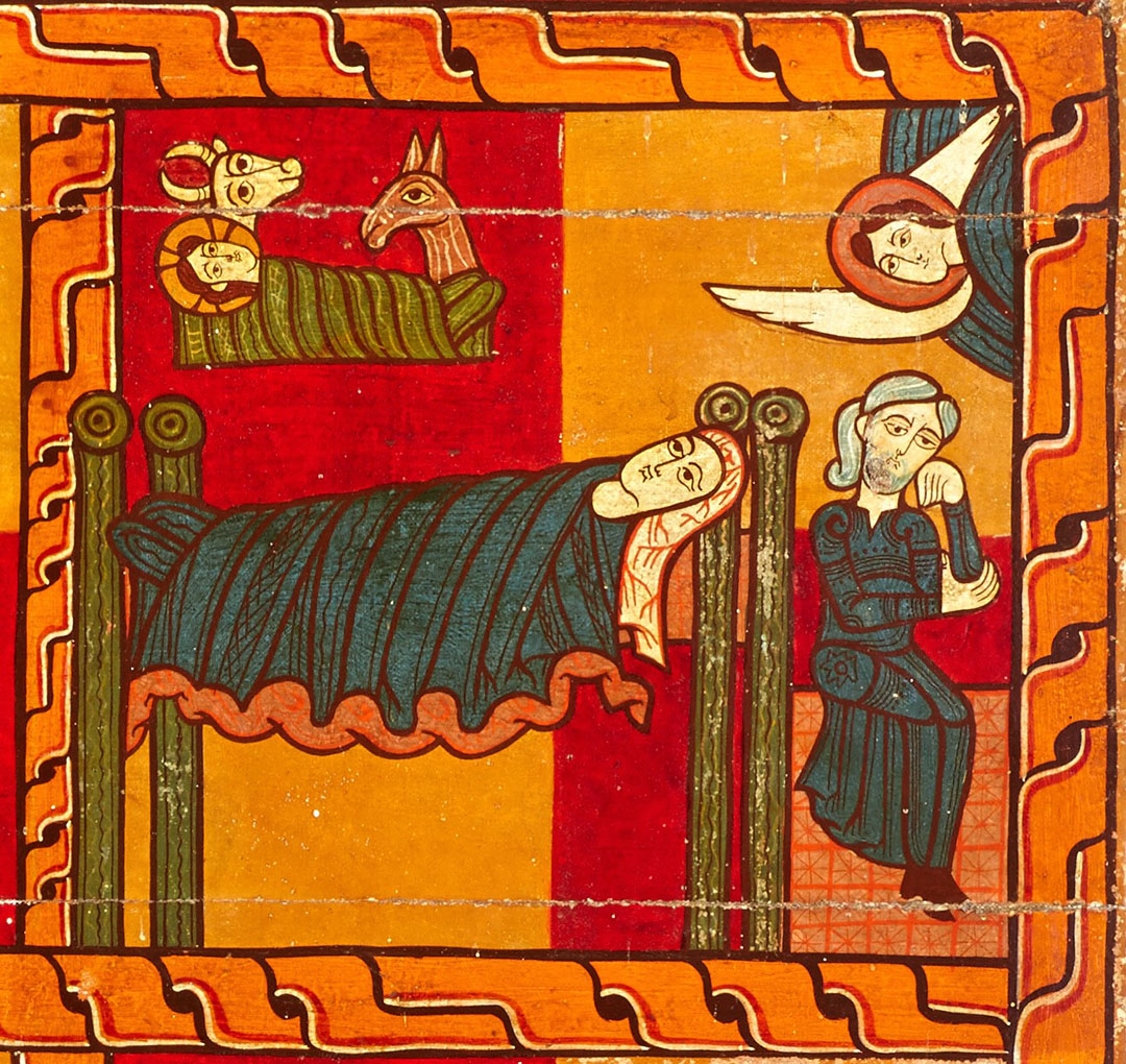 El naixement, Taula d’altar de l’església de Sant Andreu de Sagàs, Finals s. XII, Pintura al tremp sobre fusta, Museu Diocesà i Comarcal de Solsona, MDCS núm. 11.2