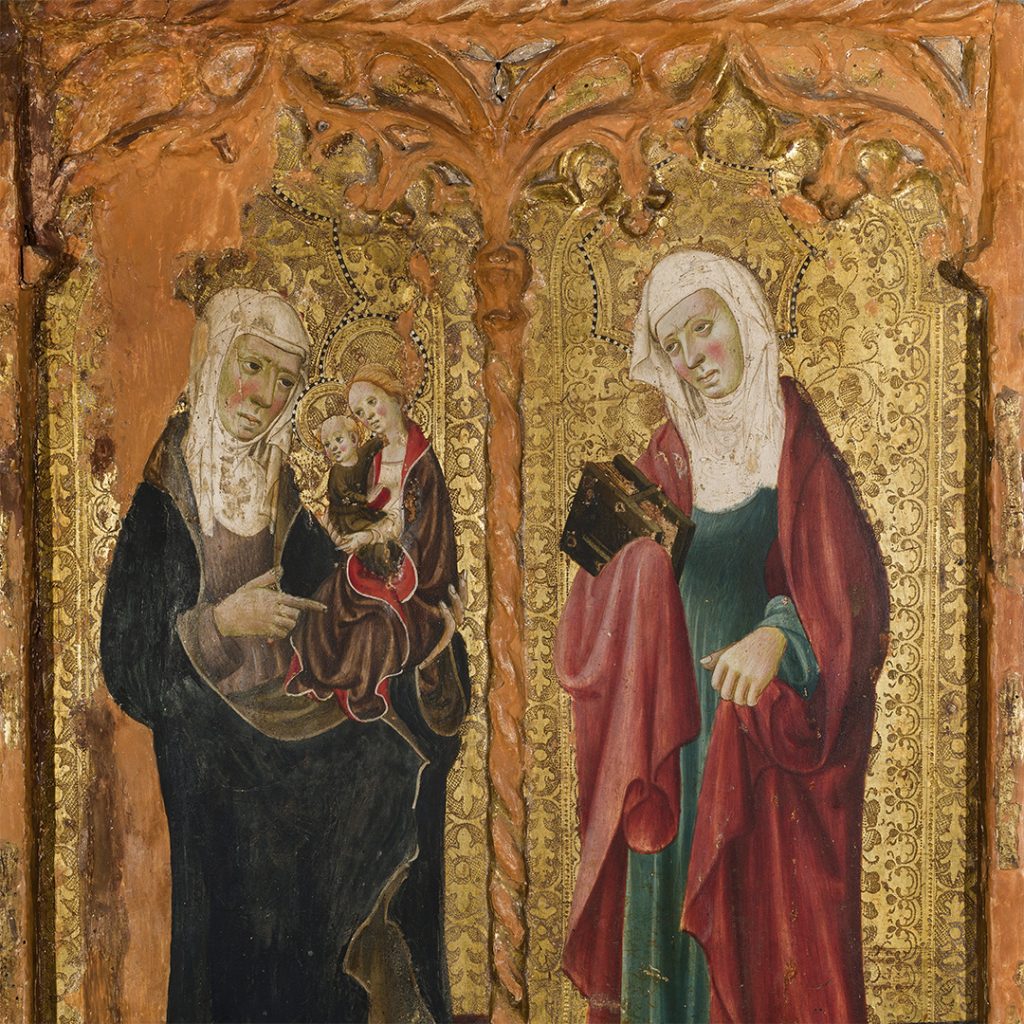 Mestre de Santa Basilissa Compartiment d’un retaule representant santa Anna, la Mare de Déu i l’Infant Catalunya, segon quart del s. XV Tremp i daurat amb pa d’or sobre fusta Procedència desconeguda Museu Episcopal de Vic, MEV núm. 1031 Fotografia: © Museu Episcopal de Vic, arxiu: The Mad Pixel Factory