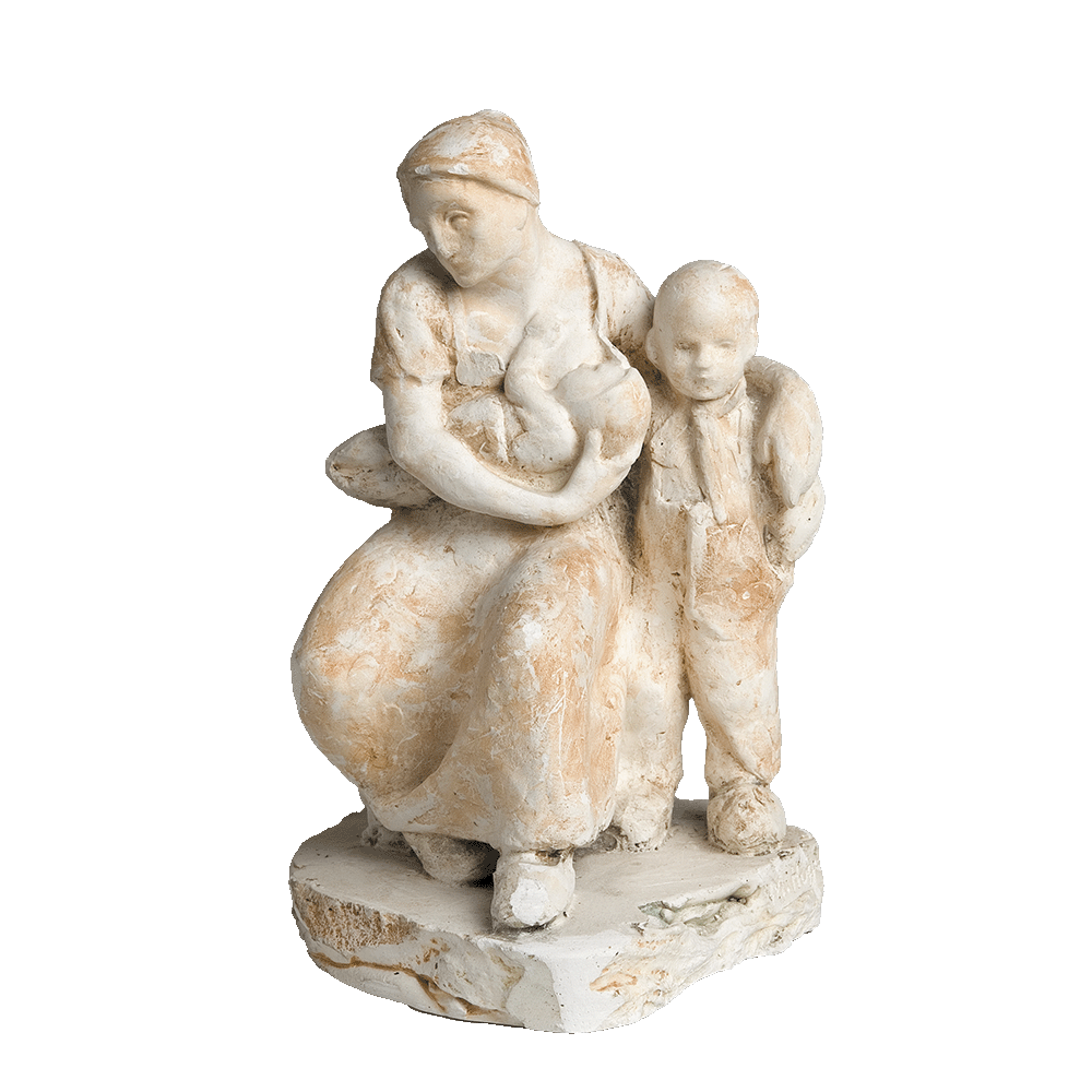 Aquesta maternitat, modelada en guix possiblement durant una de les diverses estades de Manolo Hugué a finals del segle XIX a Cadaqués, és l’única peça conservada dels inicis de la trajectòria de l’escultor, anterior al seu viatge a París de l’any 1900, uns anys en què, tanmateix, va assolir un primer reconeixement entre els ambients artístics de Barcelona. Hugué, un dels escultors catalans més brillants de la primera meitat del segle XX i autor de moltes altres maternitats, i fins i tot alguna paternitat, va modelar en aquest cas un grup escultòric ple d’humanitat seguint l’estètica del tombant de segle. Posant un èmfasi en la mirada social que compartia amb molts amics postmodernistes, com Gargallo, Fontbona i Picasso, va crear la imatge moderna d’una mare d’estatus humil donant el pit a un nadó mentre abraça el seu altre fill.