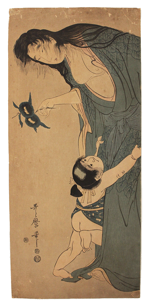 Kitagawa Utamaro, Yamauba i Kintarō, 1804-1805, Edició original de Murataya Jirobei (reedició de 1912), Xilografia a color. Museu Abelló