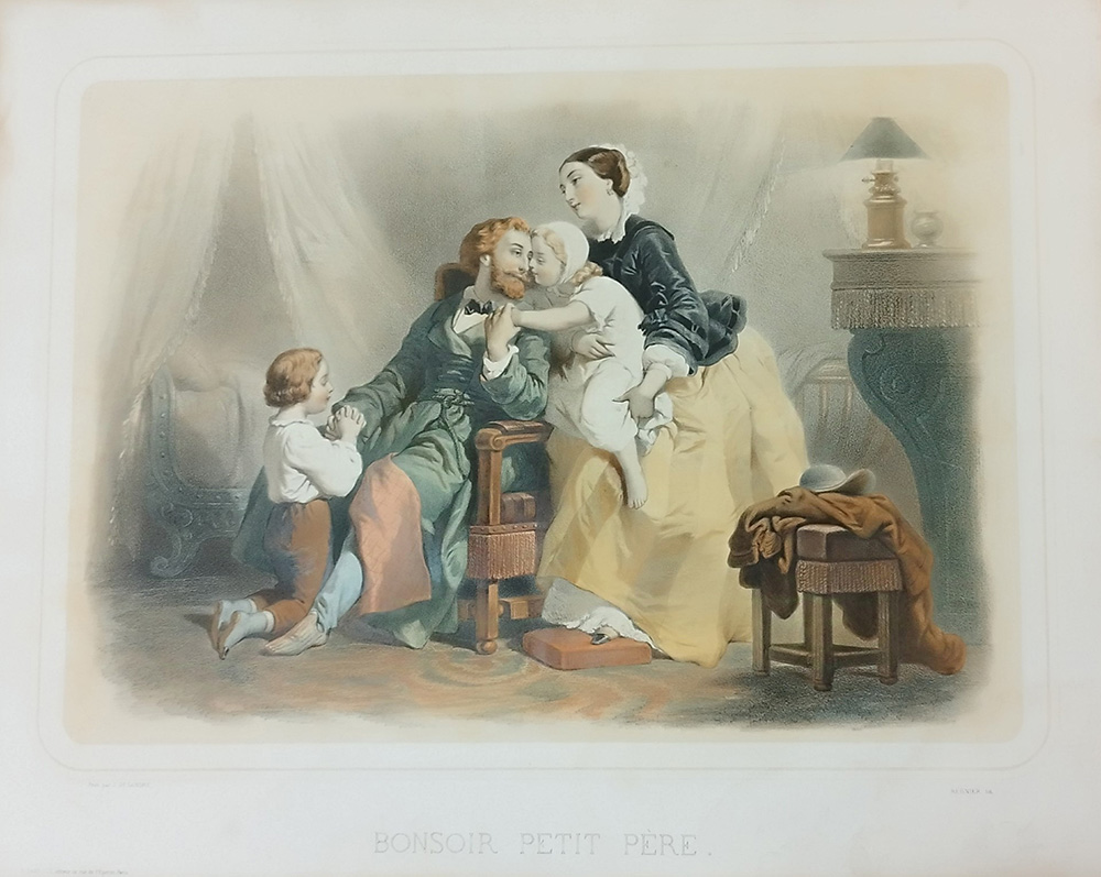 Al llarg del segle XVIII i durant el segle XIX, els referents il·lustrats de comportament virtuós van estendre un model idealitzat de representació familiar basat en la parella i els fills on cadascú ocupava un lloc específic en la societat, amb el pare amb un rol públic, amb feina exterior i actuant com autoritat i cap de família, i la mare amb un rol centrat en l’esfera privada, la llar i la criança dels fills. Des dels olis de Greuze elogiats als Salons de París fins als gravats difosos massivament al llarg dels segles XVIII i XIX, com ara les litografies d’obres de Jules Marie Désandré, van ser molts els canals a través dels quals es va difondre un mateix model familiar en consonància amb la moral de l’època i els dictats de l’Església. La reproductibilitat tècnica de les imatges va afavorir la ràpida difusió d’aquesta mena de litografies, que perpetuaven els rols de gènere així com models de comportament moral i social.