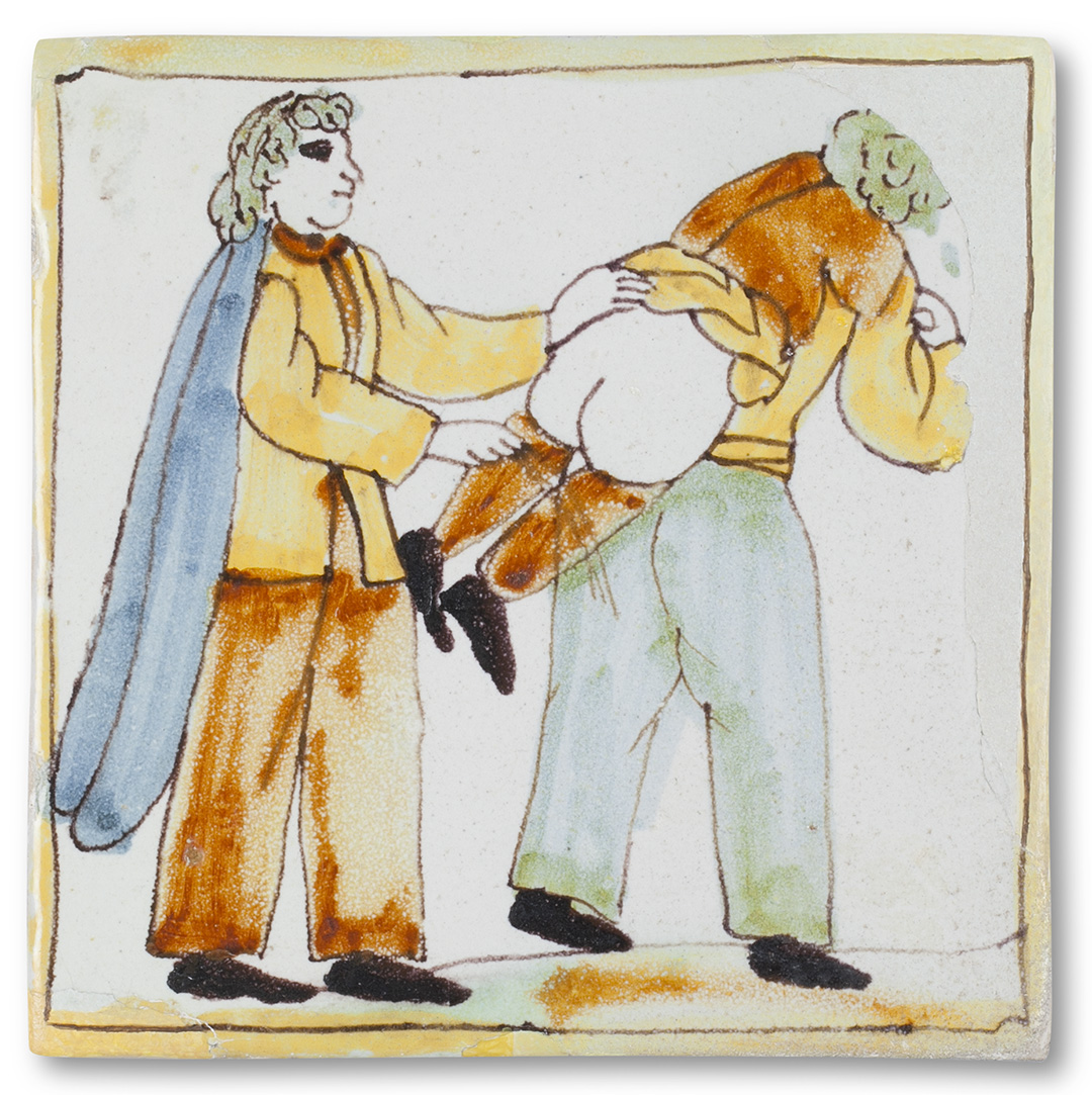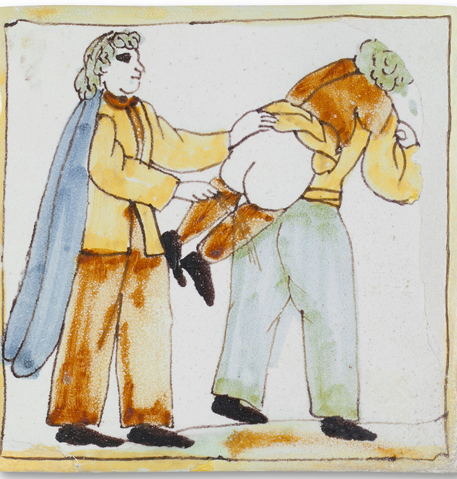 A partir de mitjan segle XVII i al llarg del segle XVIII i la primera meitat del XIX es va difondre a Catalunya un nou tipus de ceràmica ben peculiar: rajoles decorades amb motius populars, sovint representant arts i oficis, però també mostrant escenes úniques de la vida quotidiana d’homes, dones i nens en tota mena d’actituds. Del joc a la malifeta sovint només hi ha un pas i, de la mateixa manera que l’art ha representat alguns dels vicis i dolenteries, les rajoles també van representar, a vegades, el càstig infantil violent a les escoles com a mètode correctiu. El càstig violent a l’escola es va practicar fins al segle XX i n’han quedat tota mena de testimonis artístics i literaris recents, alguns d’ells tan explícits com els d’El nen, de Roald Dahl.