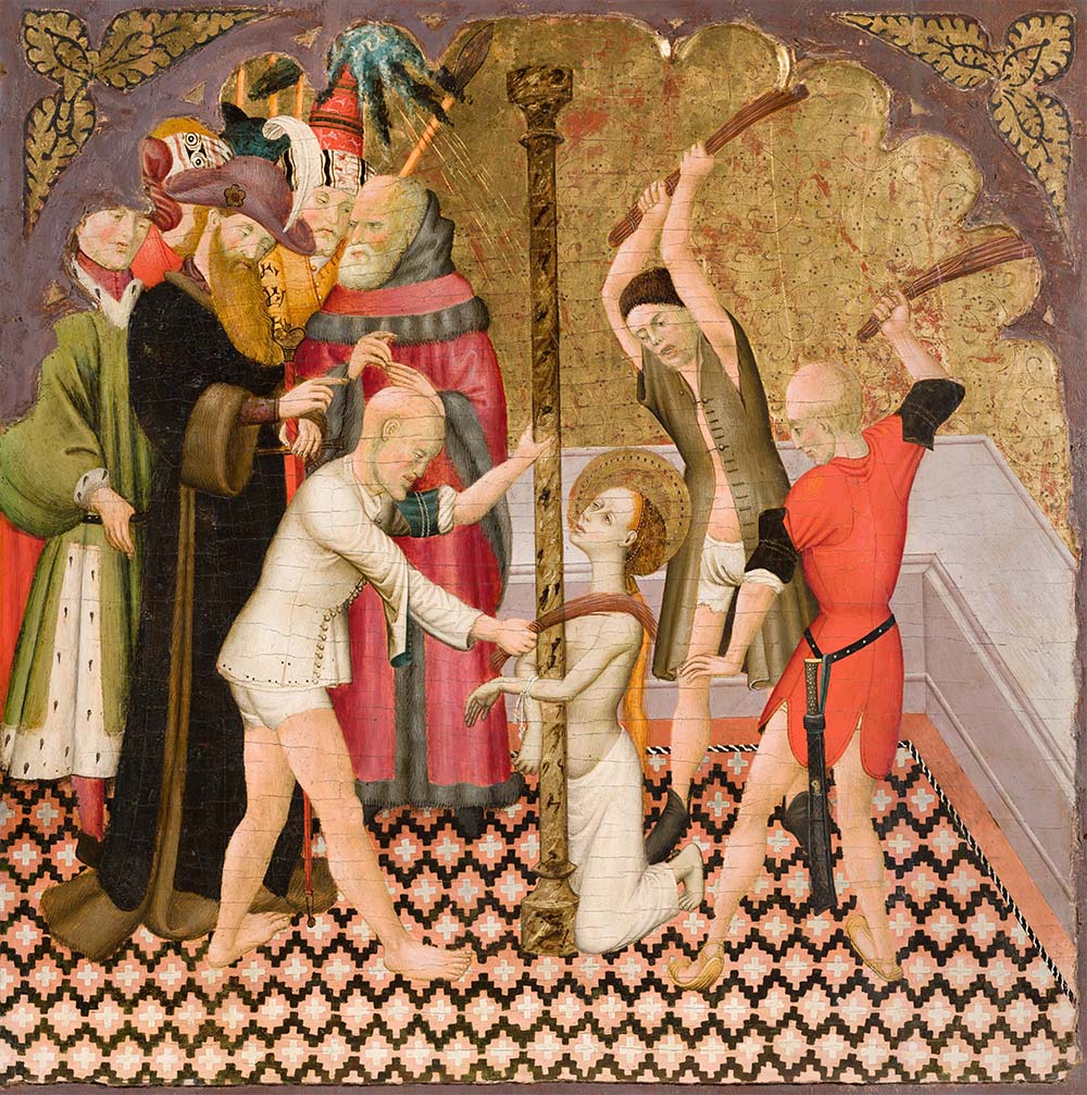 Bernat Martorell, Compartiment d’un retaule amb la flagel·lació de santa Eulàlia, 1427-1437, Tremp i daurat amb pa d’or sobre fusta. Museu Episcopal de Vic, MEV núm. 10738
