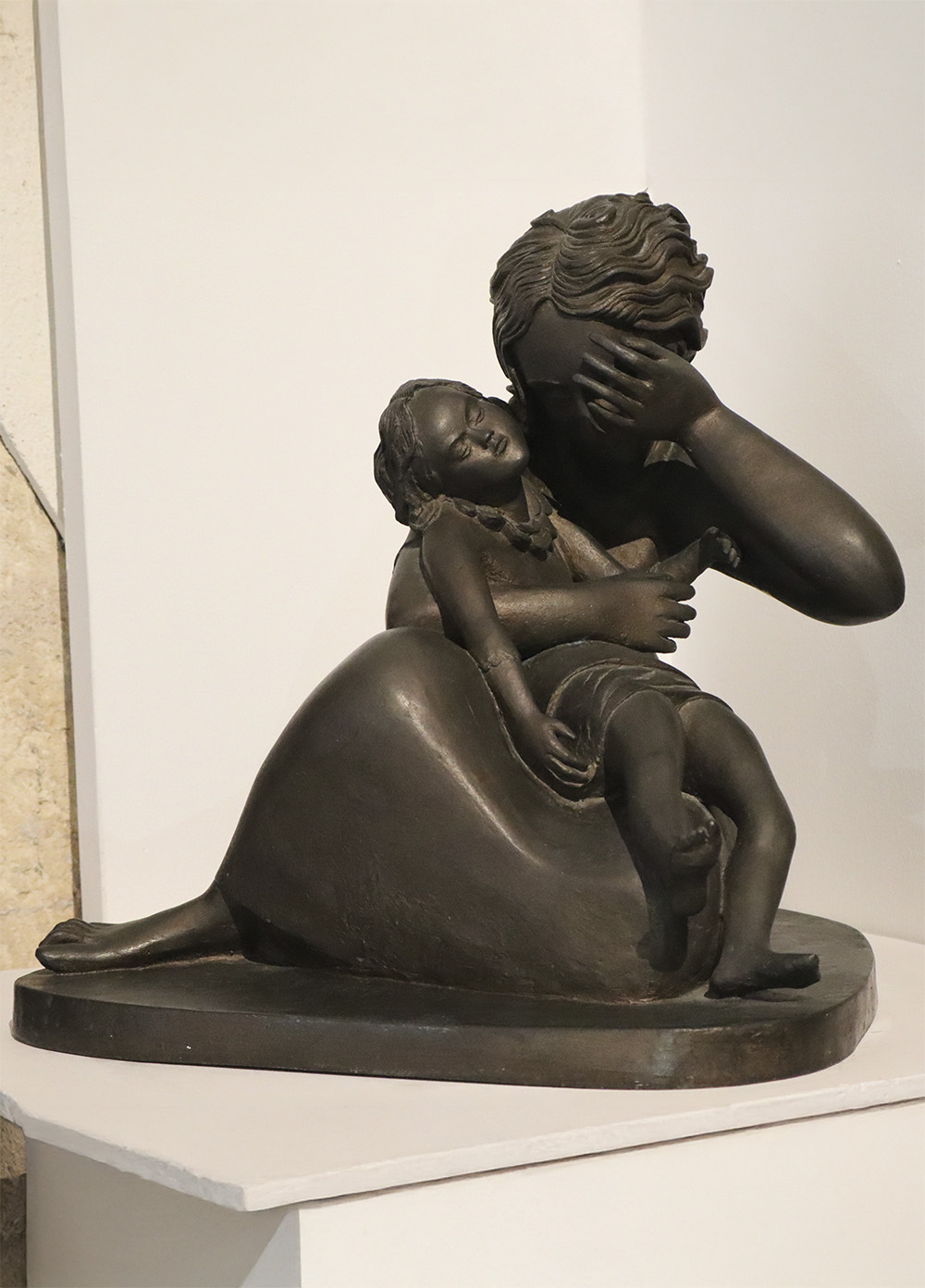 A les escenes de guerra, sovint les dones apareixen acompanyades dels seus fills com a víctimes sense protecció. Els artistes, ja des de temps antics, sovint han recorregut a aquestes imatges per cridar contra la injustícia i el dolor. És el cas de l’oli Mare davant del seu fill mort (c. 1937) de Fernando García Alegría, conservat al Museu Nacional, així com, entre altres, de l’escultura Lleida, d’Apel·les Fenosa. I és que aquell mateix impuls que va moure Picasso a pintar el Guernica va esperonar Fenosa a modelar aquesta escultura, en memòria i com a resposta al bombardeig aeri que va patir la ciutat de Lleida el 2 de novembre de 1937; un atac de la Legió Còndor que va causar més de tres-cents morts, la majoria dels quals van ser els nens del Liceu Escolar de la ciutat. El Museu Morera de Lleida conserva les terribles fotografies d’Agustí Centelles d’aquest drama humà protagonitzat per infants.