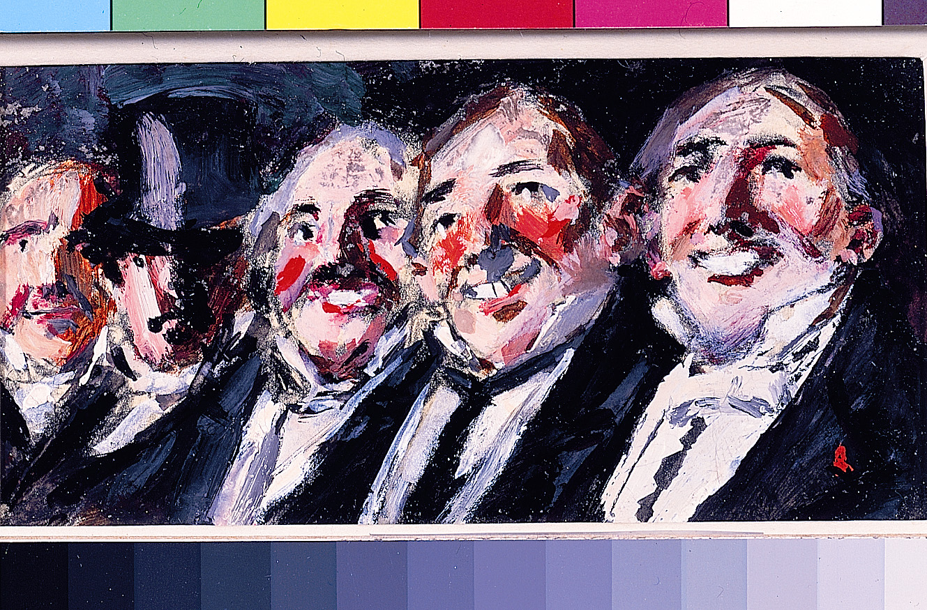 Caricatura de Ramon Casas, c. 1910. Tinta, aquarel·la i guaix sobre paper, 58 x 40 cm. Núm. registre: 698. Museu d’Art de Sabadell.