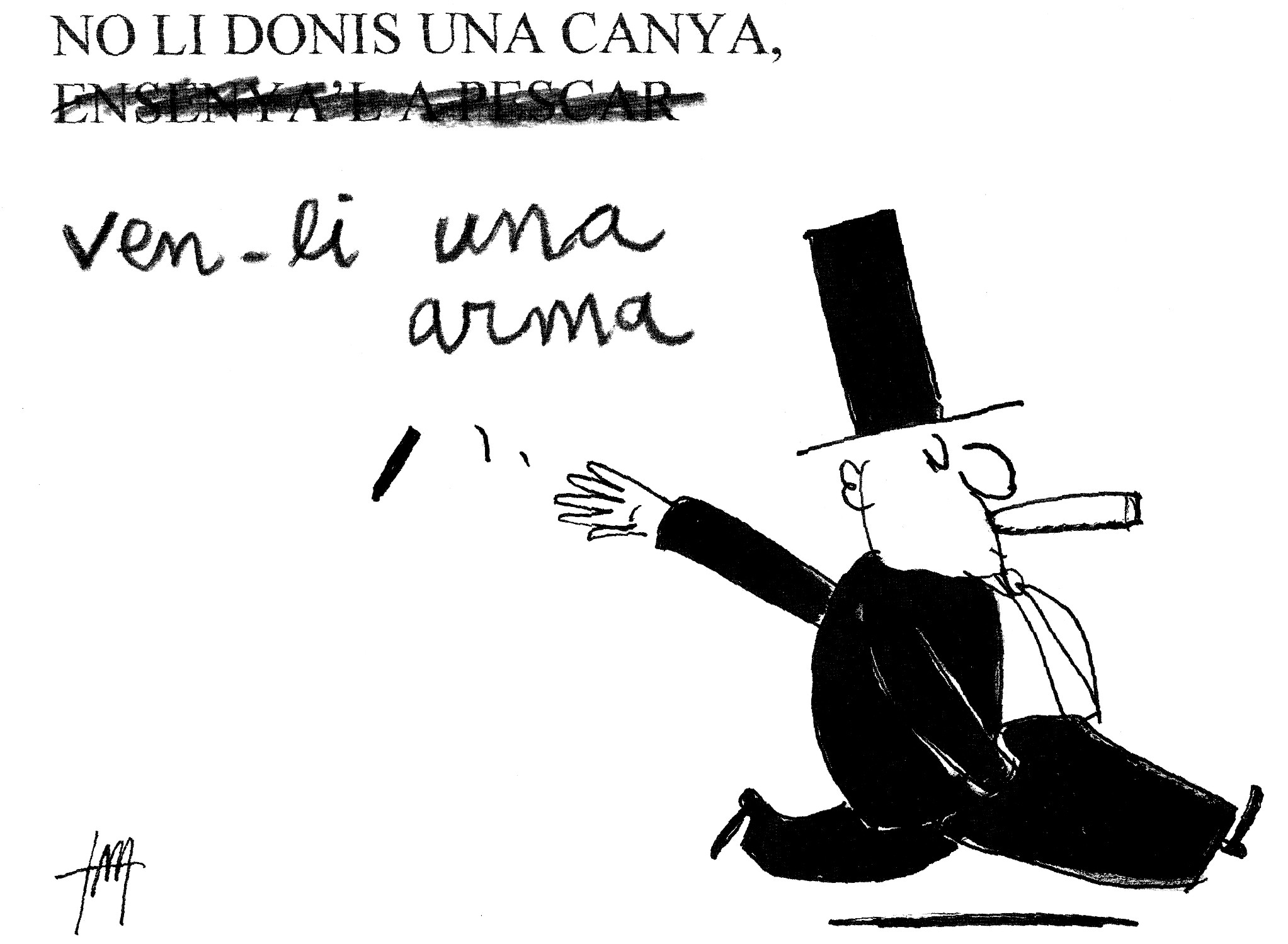 Mil? No. No hi ha mil maneres de riure. Hi ha més de mil milions de maneres de riure. La rialla esclata en companyia i és agradós compartir-la. Però el sentit de l’humor, és a dir, allò que ens fa riure o no i que modula la intensitat de la nostra resposta davant de l’estímul humorístic, és una cosa absolutament personal i intransferible, íntima, única i preciosa en cadascuna de les persones que hi ha (i hi ha hagut) sobre el planeta. És clar que hi ha una part d’aquests aspectes que són d’origen social i cultural, i els aprenem i interioritzem fins que formen part de nosaltres. Hi ha una comicitat gregària, que es manifesta en les gresques i festes populars, mediatitzades per comediants, pallassos, bufons o ninots de la imatgeria popular –com el Cucut i la Xurruca–, i una altra comicitat que és personal i privada, que viu de la complicitat, com la que unia Ramon Casas i Santiago Rusiñol. L’humor juga amb els significats i els contextos –com Picasso, fent treballar els centaures– i amb els petits detalls, com el deliciós mapa de Barcelona que Frisco dibuixà per a l’Exposició del 29.