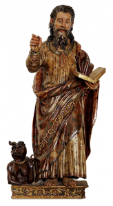 Agustí Pujol I. Sant Bartomeu Apòstol, 1587-1589. Talla de fusta, pintura al tremp, pa d’or, 127 x 55 x 43 cm. Núm. registre: MR 001466. Museu de Reus.
