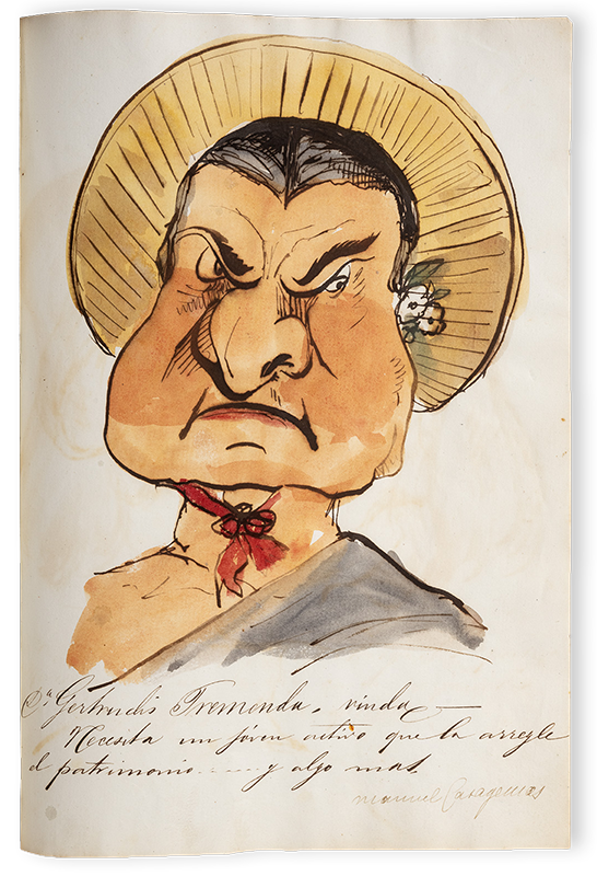 Francesc Soler i Rovirosa / Manuel Casagemas / Joan Ballester. Àlbum de caricatures, mitjans del segle XIX. Paper i aquarel·la, 30 x 21 cm. Núm. registre: MFM 6277. Museu Frederic Marès.