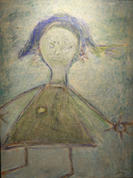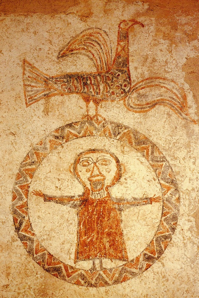L’Orant. Església de Sant Quirze de Pedret, segle X-XI. Decoració mural, pintura al fresc, 135 x 122,5 x 5 cm. Núm. de registre: MDCS 1. Museu Diocesà de Solsona.
