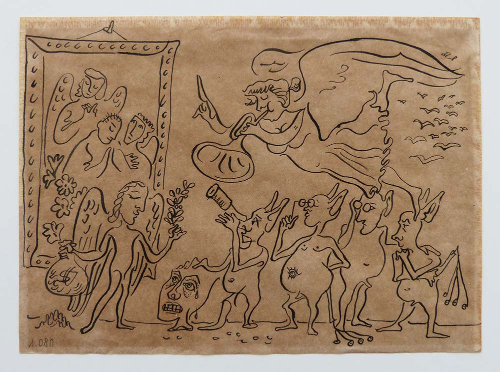 Alfred Sisquella i Oriol. Escena religiosa de caràcter humorístic, s/d. Dibuix a tinta sobre paper, 15,4 x 21,1 cm. Museu del Cau Ferrat de Sitges. Fons Cau Ferrat, núm. inv. FM 31. © Arxiu Fotogràfic del Consorci del Patrimoni de Sitges.