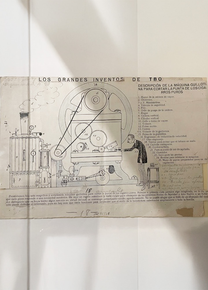 NIT (Joan Macias). Los grandes inventos de TBO: Aparato para evitar el espectáculo repugnante de los condenados… Tinta i llapis de colors sobre paper, 24,9 x 34 cm. Museu de Cerdanyola.