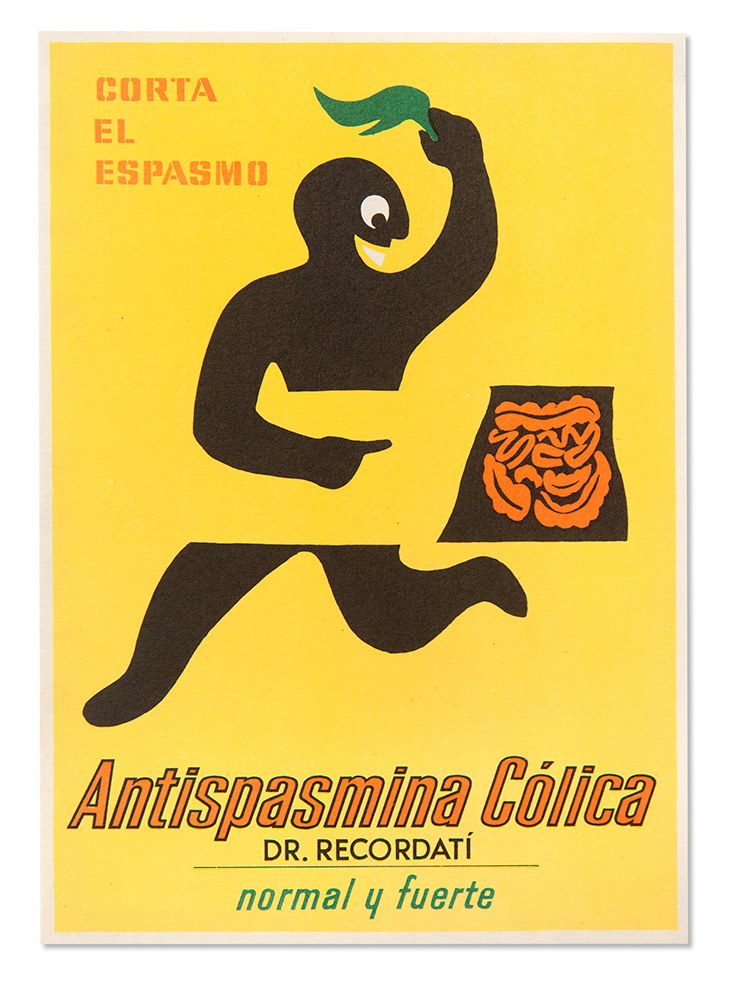 Àngel Grañena. Antispasmina Cólica, 1956. Targeta publicitària, 16,7 x 11,9 cm. GAGB 9307/14. Museu del Disseny.