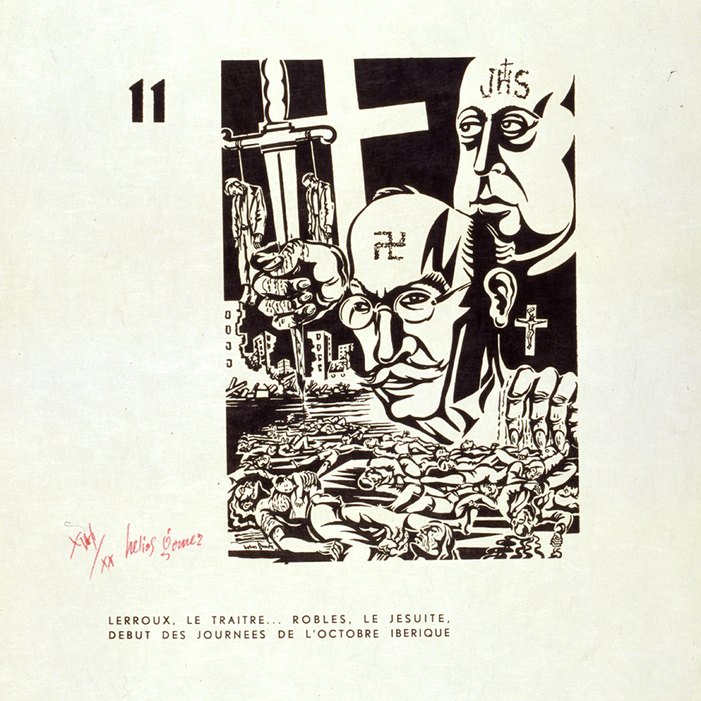 Helios Gómez. Lerroux le traitre…, 1936. Gravat, xilografia sobre paper, 29,5 x 27,5 cm. Núm. del catàleg: 214105-011. Museu Nacional d’Art de Catalunya.