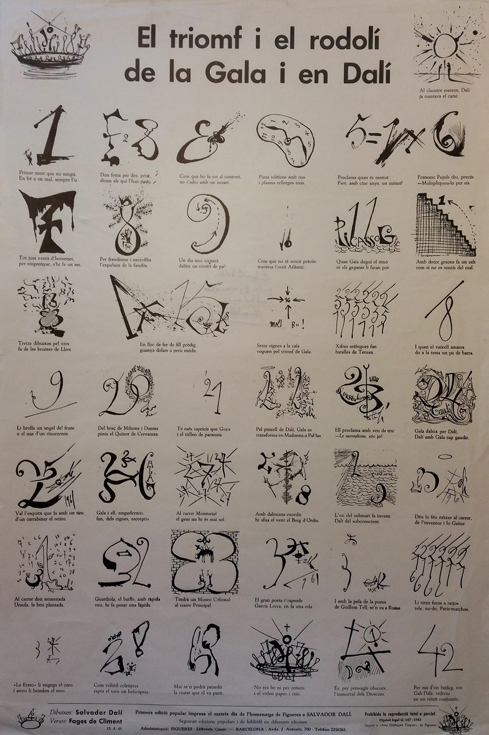 Salvador Dalí i Carles Fages de Climent. El triomf i el rodolí de la Gala i en Dalí, 1961. Auca, 63 x 43,5 cm. ME 2424. Museu de l’Empordà.
